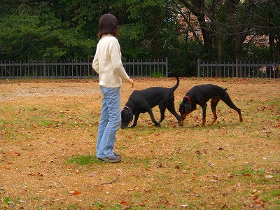 だれもいない芝生のところでリードを離すと、はじめは走り狂うのですが、